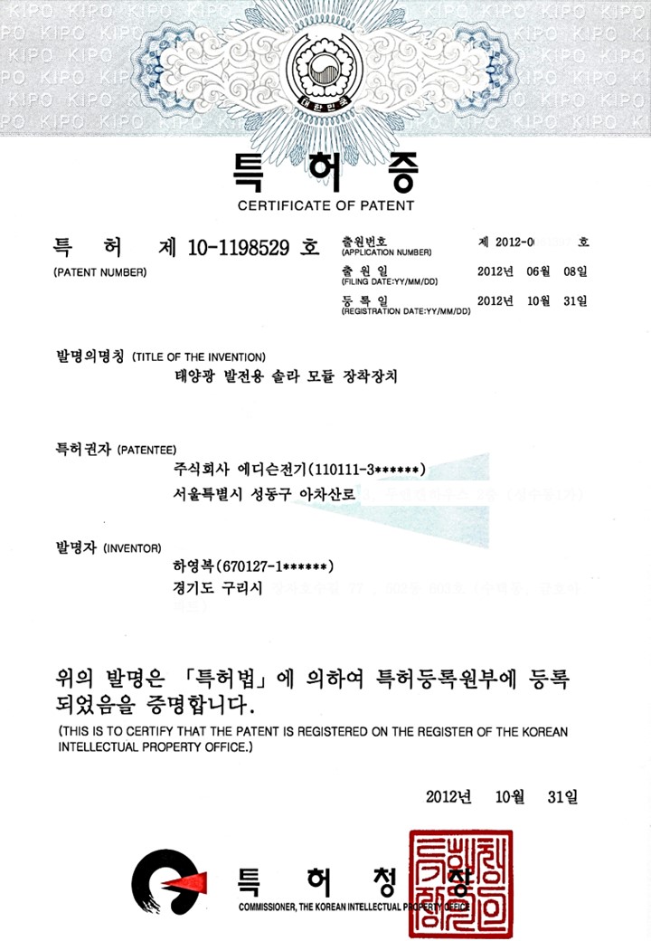 등록번호 : 제10-1198529호
